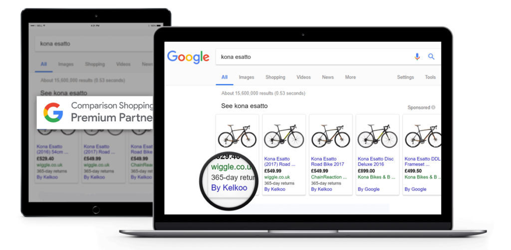 Πουλήστε τα προϊόντα σας μέσω της υπηρεσίας Google Shopping Ads και συνεργαστείτε με έναν έμπιστο Premium Google Comparison Shopping Site Partner. Οι εξειδικευμένοι mnagers μας είναι διαθέσιμοι για να σας βοηθήσουν να βελτιστοποιήσετε την επένδυσή σας και να αυξήσετε τις επιδόσεις των Google Shopping Ads campaings. Ο όμιλος Kelkoo δρα ως εναλλακτικός πάροχος για τις καμπάνιες που τρέχετε στις Google Shopping Ads, μειώνοντας το CPC (κόστος ανά κλικ) και αυξάνοντας τη ROAS (απόδοση διαφημιστικής δαπάνης) και τις εμφανίσεις.